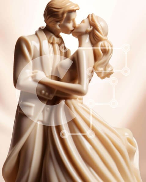 Υπάρχει δυνατότητα προσωποποίησης με δική σας φωτογραφία και προσαρμογής διαστάσεων κατόπιν παραγγελίας. Το συγεκεριμενο puzzle παρουσιαζει Η εικόνα απεικονίζει ένα ειδώλιο νύφης και γαμπρού ντυμένοι με επίσημη ενδυμασία, να μοιράζονται ένα φιλί. Αυτό το κομψό και διαχρονικό κομμάτι είναι τέλειο για τον εορτασμό μιας ειδικής περίστασης όπως ένας αρραβώνας ή ένας γάμος. Το υλικό φαίνεται να είναι κάποια μορφή πηλού