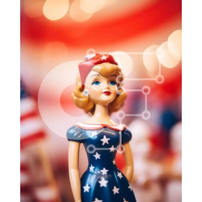 Υπάρχει δυνατότητα προσωποποίησης με δική σας φωτογραφία και προσαρμογής διαστάσεων κατόπιν παραγγελίας. Το συγεκεριμενο puzzle παρουσιαζει Η εικόνα δείχνει μια κούκλα-παιχνίδι ντυμένη με στολή αμερικανικής σημαίας, τοποθετημένη μπροστά από μια αμερικανική σημαία. Η κούκλα είναι πιθανότατα μέρος μιας πατριωτικής επίδειξης ή εκδήλωσης, που πιθανώς σχετίζεται με τον εορτασμό της 4ης Ιουλίου. Θα μπορούσε επίσης να συ