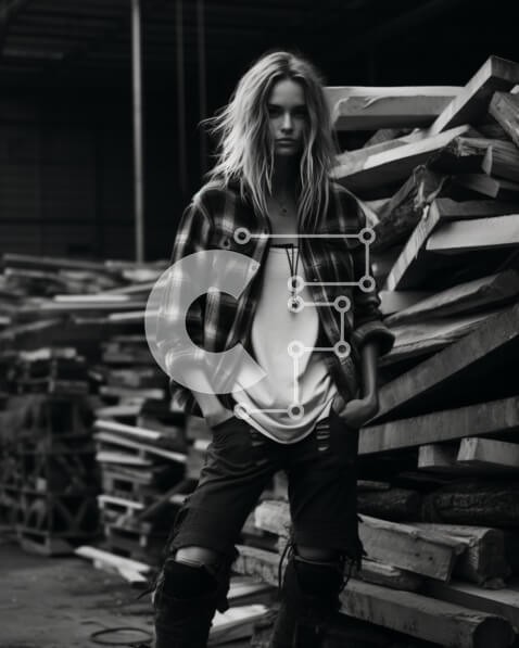 Υπάρχει δυνατότητα προσωποποίησης με δική σας φωτογραφία και προσαρμογής διαστάσεων κατόπιν παραγγελίας. Το συγεκεριμενο puzzle παρουσιαζει Αυτή η ασπρόμαυρη εικόνα απεικονίζει μια γυναίκα να στέκεται μπροστά σε σωρούς ξύλων. Φοράει ένα oversize καρό πουκάμισο, τζιν και μπότες μέχρι το γόνατο. Τα μαλλιά της είναι μακριά και το πρόσωπό της ανέκφραστο. Ένα μοναδικό puzzle που συνδυάζει ποιότητα, αισθητική και εμπει