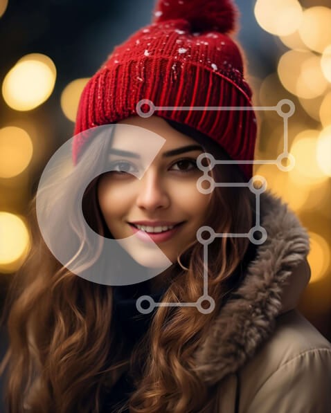 Υπάρχει δυνατότητα προσωποποίησης με δική σας φωτογραφία και προσαρμογής διαστάσεων κατόπιν παραγγελίας. Το συγεκεριμενο puzzle παρουσιαζει Αυτή η εικόνα απεικονίζει μια όμορφη νεαρή γυναίκα που φορά ένα πορτοκαλί πουλόβερ και κόκκινο φασόλι. Χαμογελά στην κάμερα και στέκεται μπροστά σε πολύχρωμα φώτα, υπονοώντας ότι απολαμβάνει τις γιορτές με τους φίλους ή την οικογένειά της. Στο βάθος διακρίνονται νιφάδες χιονιο