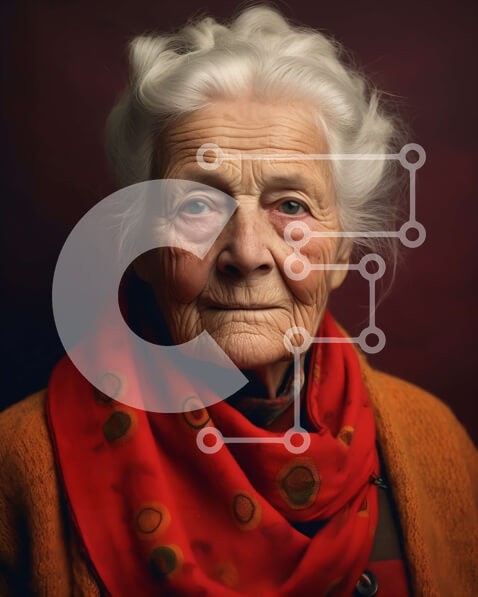 Υπάρχει δυνατότητα προσωποποίησης με δική σας φωτογραφία και προσαρμογής διαστάσεων κατόπιν παραγγελίας. Το συγεκεριμενο puzzle παρουσιαζει Αυτό είναι ένα πορτρέτο μιας ηλικιωμένης γυναίκας που φορά ένα κόκκινο κασκόλ και ένα πορτοκαλί σακάκι. Έχει λευκά μαλλιά και γυαλιά. Η εικόνα δείχνει τη μοναδική αίσθηση του στυλ και τη ζωντανή της προσωπικότητα. Ένα μοναδικό puzzle που συνδυάζει ποιότητα, αισθητική και εμπε