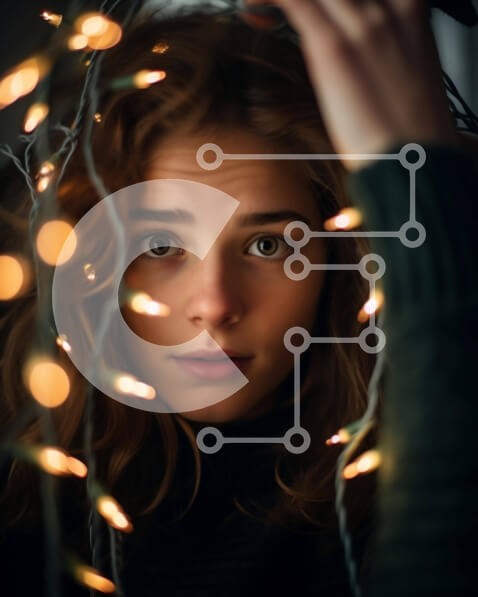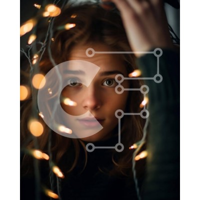 Υπάρχει δυνατότητα προσωποποίησης με δική σας φωτογραφία και προσαρμογής διαστάσεων κατόπιν παραγγελίας. Το συγεκεριμενο puzzle παρουσιαζει Αυτή η εικόνα δείχνει μια νεαρή γυναίκα με μακριά, σγουρά μαλλιά να στέκεται μπροστά σε μια εκπληκτική διάταξη χριστουγεννιάτικων λαμπτήρων. Τα φώτα κρύβουν το πρόσωπό της, δημιουργώντας μια συναρπαστική και σαγηνευτική σύνθεση. Προκαλεί μια αίσθηση μυστηρίου και προσμονής καθ