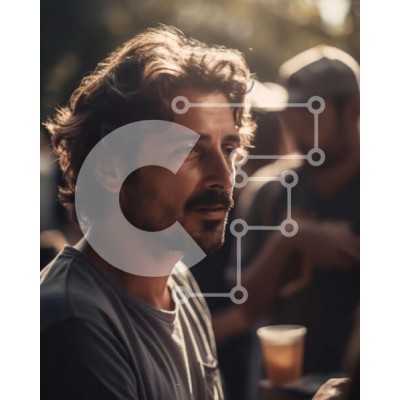 Υπάρχει δυνατότητα προσωποποίησης με δική σας φωτογραφία και προσαρμογής διαστάσεων κατόπιν παραγγελίας. Το συγεκεριμενο puzzle παρουσιαζει Αυτή η εικόνα απεικονίζει έναν άνδρα με κοντά, σγουρά μαλλιά και ατημέλητο γένι να στέκεται σε ένα πλήθος ανθρώπων. Κοιτάζει μακριά με μια σοβαρή έκφραση στο πρόσωπό του, ενώ οι άνθρωποι γύρω του κουβεντιάζουν και γελούν. Στο βάθος, υπάρχουν τραπεζάκια με ποτά και φαγητό. Ο άν