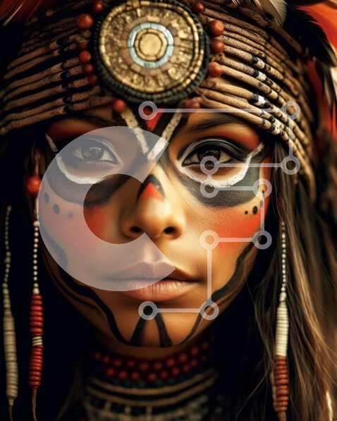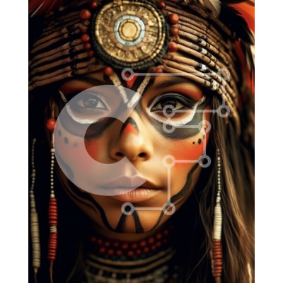 Υπάρχει δυνατότητα προσωποποίησης με δική σας φωτογραφία και προσαρμογής διαστάσεων κατόπιν παραγγελίας. Το συγεκεριμενο puzzle παρουσιαζει Αυτή η εικόνα απεικονίζει μια γυναίκα που φορά μια ιθαγενή αμερικανική κόμμωση με περίπλοκα χάντρες και φτερά. Το πρόσωπό της είναι ζωγραφισμένο με παραδοσιακά σχέδια, τονίζοντας την πολιτιστική σημασία αυτής της ενδυμασίας. Η φωτογραφία είναι μια κοντινή λήψη, που τονίζει τις