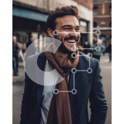 Υπάρχει δυνατότητα προσωποποίησης με δική σας φωτογραφία και προσαρμογής διαστάσεων κατόπιν παραγγελίας. Το συγεκεριμενο puzzle παρουσιαζει Αυτή η εικόνα παρουσιάζει έναν άντρα με αυτοπεποίθηση που φοράει κοστούμι και γραβάτα με ένα καφέ μαντήλι στο λαιμό του. Στέκεται σε έναν πολυσύχναστο δρόμο της πόλης με κτίρια και αυτοκίνητα σε απόσταση. Έχει επίσης ένα σακίδιο πλάτης κρεμασμένο στον ώμο του. Αυτή η εικόνα απ