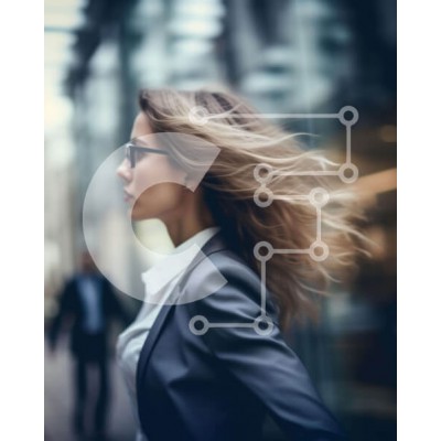 Υπάρχει δυνατότητα προσωποποίησης με δική σας φωτογραφία και προσαρμογής διαστάσεων κατόπιν παραγγελίας. Το συγεκεριμενο puzzle παρουσιαζει Η εικόνα δείχνει μια γυναίκα με μακριά, γεμάτα μαλλιά να περπατά στο δρόμο σε ένα αστικό περιβάλλον. Φοράει γυαλιά και τα μαλλιά της φυσούν στον άνεμο, υποδηλώνοντας ότι είναι σε εξωτερικό χώρο ή σε εξωτερικό χώρο. Υπάρχουν αρκετοί άνθρωποι που περπατούν στη σκηνή, γεγονός που