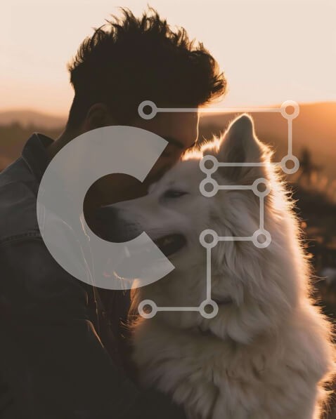 Υπάρχει δυνατότητα προσωποποίησης με δική σας φωτογραφία και προσαρμογής διαστάσεων κατόπιν παραγγελίας. Το συγεκεριμενο puzzle παρουσιαζει Αυτή η εικόνα απεικονίζει μια συγκινητική στιγμή ενός άνδρα που αγκαλιάζει τον φιλικό, καλοσυντηρημένο λευκό σκύλο του το ηλιοβασίλεμα. Ο άνδρας κρατά το λουρί του σκύλου, υποδηλώνοντας έναν στενό δεσμό και πιθανή συμμετοχή σε μια δραστηριότητα μαζί. Ένα μοναδικό puzzle που σ