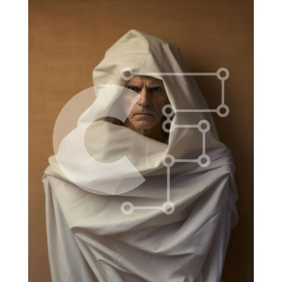 Υπάρχει δυνατότητα προσωποποίησης με δική σας φωτογραφία και προσαρμογής διαστάσεων κατόπιν παραγγελίας. Το συγεκεριμενο puzzle παρουσιαζει Αυτή η εικόνα δείχνει έναν άνδρα να στέκεται μπροστά από έναν μπεζ τοίχο. Φοράει μια λευκή ρόμπα με το κεφάλι καλυμμένο με κουκούλα. Ο άντρας στέκεται ίσια με τα χέρια στα πλάγια. Η συνολική διάθεση της εικόνας είναι μυστηριώδης και ενδιαφέρουσα. Ένα μοναδικό puzzle που συνδυ