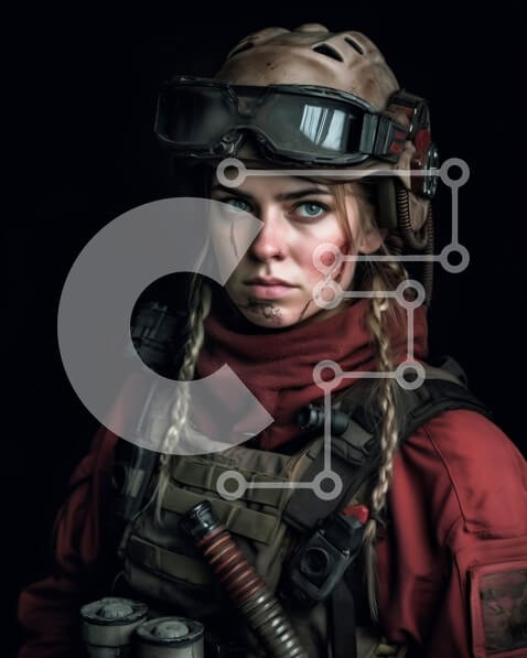 Υπάρχει δυνατότητα προσωποποίησης με δική σας φωτογραφία και προσαρμογής διαστάσεων κατόπιν παραγγελίας. Το συγεκεριμενο puzzle παρουσιαζει Αυτή η εικόνα είναι μιας γυναίκας στρατιώτης που στέκεται μπροστά από ένα μαύρο φόντο. Φοράει κόκκινο κασκόλ και γυαλιά ενώ κρατάει ένα τουφέκι. Η αποφασιστική της έκφραση και η ισχυρή της στάση δείχνουν τη δύναμη των γυναικών στο στρατό. Ένα μοναδικό puzzle που συνδυάζει ποι