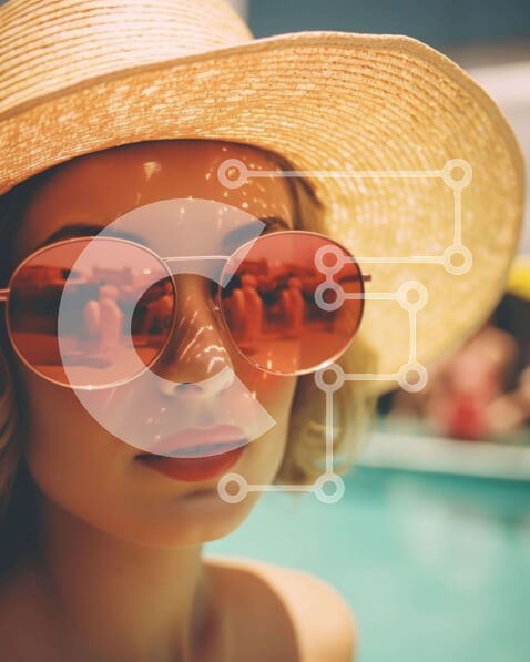 Υπάρχει δυνατότητα προσωποποίησης με δική σας φωτογραφία και προσαρμογής διαστάσεων κατόπιν παραγγελίας. Το συγεκεριμενο puzzle παρουσιαζει Η εικόνα δείχνει μια κομψή γυναίκα που φοράει γυαλιά ηλίου και ένα μεγάλο καπέλο, στέκεται δίπλα σε μια πισίνα, υποδηλώνοντας μια χαλαρή μέρα στην παραλία ή υπαίθρια χαλάρωση. Επιπλέον, δύο άνδρες και μια γυναίκα βρίσκονται επίσης στο σημείο. Ένα μοναδικό puzzle που συνδυάζει