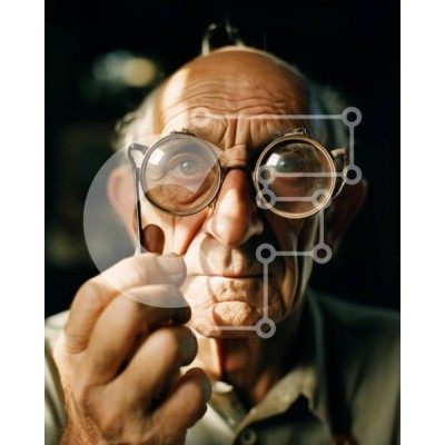 Υπάρχει δυνατότητα προσωποποίησης με δική σας φωτογραφία και προσαρμογής διαστάσεων κατόπιν παραγγελίας. Το συγεκεριμενο puzzle παρουσιαζει Η εικόνα απεικονίζει έναν ηλικιωμένο άνδρα που φοράει γυαλιά και κρατά ένα μικρό αντικείμενο μέχρι το μάτι του. Το πρόσωπό του δείχνει ορατές ρυτίδες, υποδηλώνοντας ηλικία και σοφία. Ένα μοναδικό puzzle που συνδυάζει ποιότητα, αισθητική και εμπειρία. Υλικό: Κατασκευασμένο απ