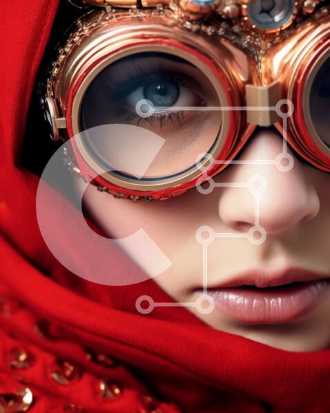 Υπάρχει δυνατότητα προσωποποίησης με δική σας φωτογραφία και προσαρμογής διαστάσεων κατόπιν παραγγελίας. Το συγεκεριμενο puzzle παρουσιαζει Αυτή η εικόνα παρουσιάζει μια γυναίκα που φορά κόκκινο κασκόλ και γυαλιά, με φωτεινά μπλε μάτια. Το επίκεντρο της εικόνας είναι στο πρόσωπό της, με το κασκόλ και τα γυαλιά να προσθέτουν ένα ενδιαφέρον στοιχείο στο στυλ της. Τα ζωηρά χρώματα και οι έντονες λεπτομέρειες κάνουν α