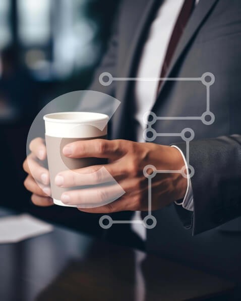 Υπάρχει δυνατότητα προσωποποίησης με δική σας φωτογραφία και προσαρμογής διαστάσεων κατόπιν παραγγελίας. Το συγεκεριμενο puzzle παρουσιαζει Η εικόνα απεικονίζει έναν άνδρα που κρατά ένα άδειο φλιτζάνι καφέ στα χέρια του. Πιθανότατα κάθεται στο τραπέζι, κάτι που μπορεί να δείχνει ότι εργάζεται ή περιμένει κάποιον να φτάσει. Υπάρχουν πολλά άλλα άτομα στην εικόνα, συμπεριλαμβανομένων δύο ανδρών και μιας γυναίκας. Έν