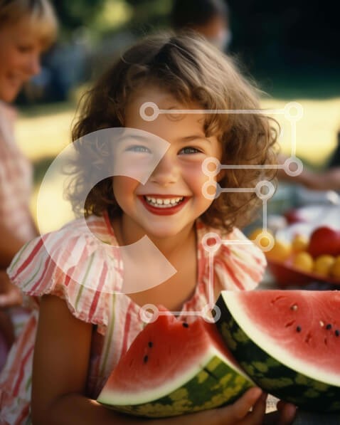 Υπάρχει δυνατότητα προσωποποίησης με δική σας φωτογραφία και προσαρμογής διαστάσεων κατόπιν παραγγελίας. Το συγεκεριμενο puzzle παρουσιαζει Ένα νεαρό κορίτσι που κρατά δύο φέτες καρπούζι και χαμογελά στην κάμερα, περιτριγυρισμένο από άλλα άτομα, μερικά από τα οποία είναι παιδιά ή έφηβοι. Η ρύθμιση υποδηλώνει μια χαρούμενη στιγμή απόλαυσης φρούτων μαζί. Ένα μοναδικό puzzle που συνδυάζει ποιότητα, αισθητική και εμπ