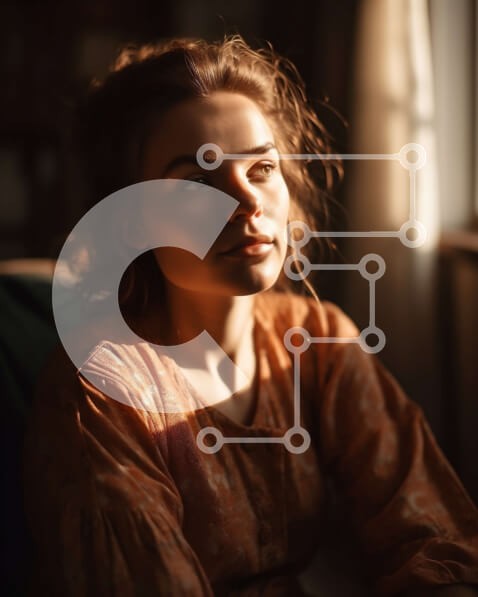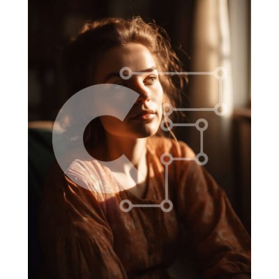 Υπάρχει δυνατότητα προσωποποίησης με δική σας φωτογραφία και προσαρμογής διαστάσεων κατόπιν παραγγελίας. Το συγεκεριμενο puzzle παρουσιαζει Αυτή η εικόνα δείχνει μια γυναίκα με ένα πορτοκαλί φόρεμα να κάθεται μπροστά από ένα παράθυρο, κοιτάζοντας έξω στο φως του ήλιου. Έχει μακριά καστανά σγουρά μαλλιά και φοράει γυαλιά. Το φως του ήλιου ρίχνει μια ζεστή λάμψη στο δέρμα της, δίνοντάς της μια όμορφη και γαλήνια εμφ