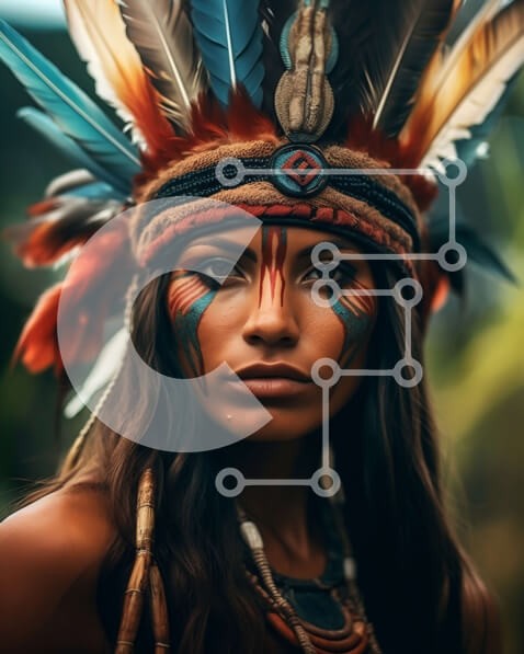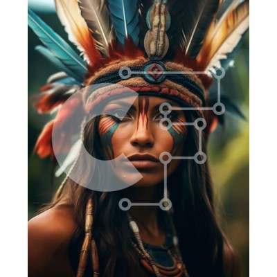 Υπάρχει δυνατότητα προσωποποίησης με δική σας φωτογραφία και προσαρμογής διαστάσεων κατόπιν παραγγελίας. Το συγεκεριμενο puzzle παρουσιαζει Αυτή η εικόνα παρουσιάζει μια όμορφη ιθαγενή Αμερικανίδα που φοράει παραδοσιακή κόμμωση και μπογιά προσώπου. Η κόμμωση είναι διακοσμημένη με φτερά, χάντρες και άλλες περίπλοκες λεπτομέρειες και η βαφή προσώπου είναι σχεδιασμένη με όμορφα σχέδια και χρώματα. Η έκφραση της γυναί