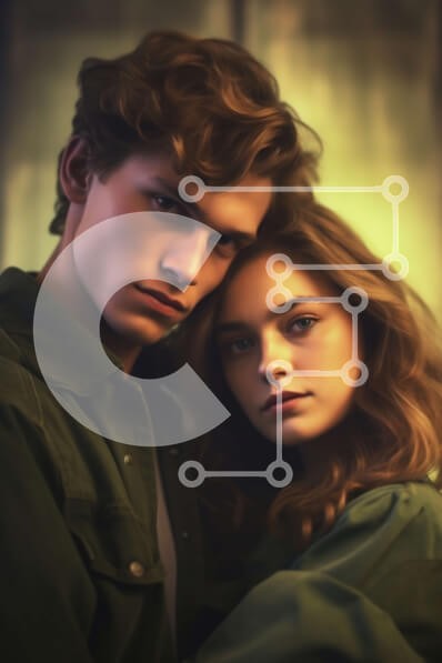 Υπάρχει δυνατότητα προσωποποίησης με δική σας φωτογραφία και προσαρμογής διαστάσεων κατόπιν παραγγελίας. Το συγεκεριμενο puzzle παρουσιαζει Αυτή είναι μια ρομαντική εικόνα ενός νεαρού ζευγαριού που στέκεται μπροστά σε ένα σκούρο φόντο. Και οι δύο φορούν πράσινα μπουφάν και ο άντρας έχει το χέρι του γύρω από τον ώμο της γυναίκας. Κοιτάζονται στα μάτια με βλέμμα αγάπης. Η γυναίκα έχει μακριά, σγουρά μαλλιά και ο άντ