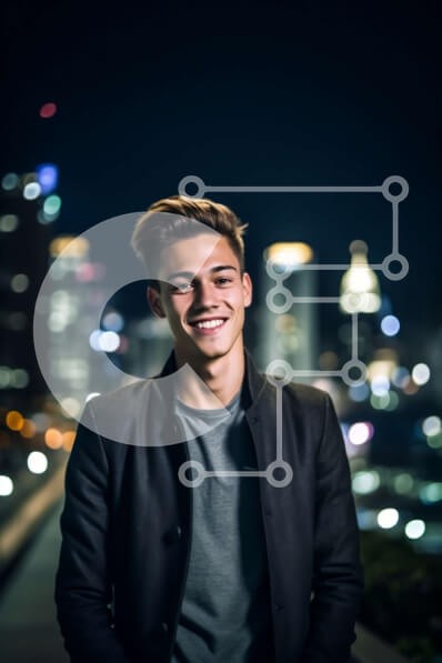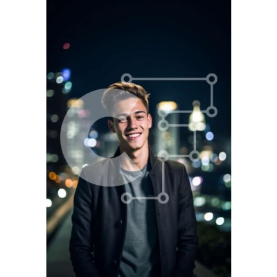 Υπάρχει δυνατότητα προσωποποίησης με δική σας φωτογραφία και προσαρμογής διαστάσεων κατόπιν παραγγελίας. Το συγεκεριμενο puzzle παρουσιαζει Αυτή η εικόνα παρουσιάζει έναν νεαρό άνδρα που φορά ένα μαύρο σακάκι και στέκεται σε μια ταράτσα με θέα στον ορίζοντα της πόλης τη νύχτα. Χαμογελά μπροστά στην κάμερα και ο λαμπερός ορίζοντα λειτουργεί ως απίστευτο σκηνικό. Η εκπληκτική αντίθεση ανάμεσα στον άνδρα και το αστικ