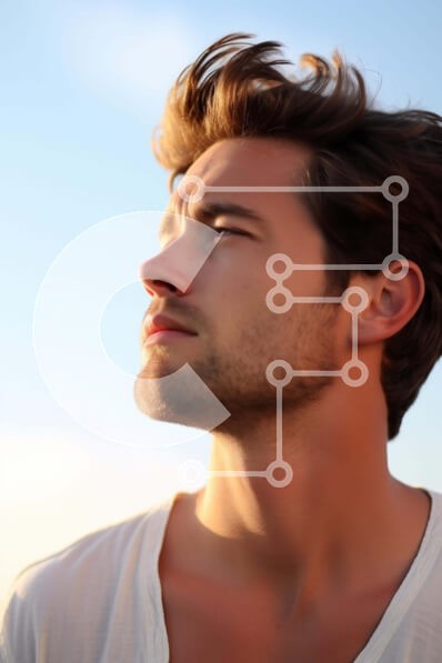Υπάρχει δυνατότητα προσωποποίησης με δική σας φωτογραφία και προσαρμογής διαστάσεων κατόπιν παραγγελίας. Το συγεκεριμενο puzzle παρουσιαζει Η εικόνα δείχνει έναν άνδρα να κοιτάζει τον ουρανό με το κεφάλι του να είναι γερμένο στο πλάι. Τα μαλλιά του είναι όμορφα χτενισμένα και χτενισμένα, υποδηλώνοντας ότι χτενίζεται. Μπορεί επίσης να κοιτάζει στο κενό ή να σκέφτεται κάτι στο βάθος. Ένα μοναδικό puzzle που συνδυάζ