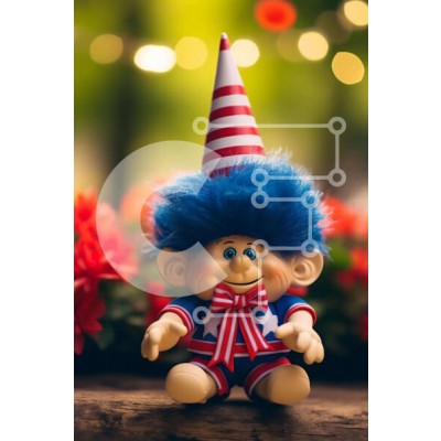 Υπάρχει δυνατότητα προσωποποίησης με δική σας φωτογραφία και προσαρμογής διαστάσεων κατόπιν παραγγελίας. Το συγεκεριμενο puzzle παρουσιαζει Η εικόνα απεικονίζει μια κούκλα τρολ με καπέλο αμερικανικής σημαίας και κόκκινο, λευκό και μπλε ντύσιμο. Η κούκλα κάθεται πάνω από μερικά λουλούδια στο βάθος, υποδηλώνοντας ότι μπορεί να είναι σε εξωτερικό χώρο. Φαίνεται επίσης να χαμογελά στην κάμερα, κάτι που προσθέτει στη σ