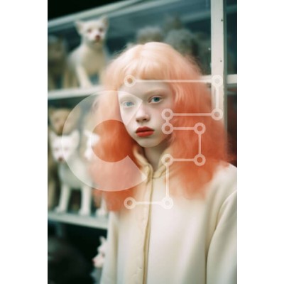 Υπάρχει δυνατότητα προσωποποίησης με δική σας φωτογραφία και προσαρμογής διαστάσεων κατόπιν παραγγελίας. Το συγεκεριμενο puzzle παρουσιαζει Η εικόνα δείχνει μια νεαρή γυναίκα με ροζ μαλλιά να στέκεται μπροστά σε λούτρινα ζωάκια. Είναι ντυμένη με ένα πορτοκαλί σακάκι και ένα λευκό πουκάμισο, που πιθανόν να ταιριάζει με την πρόσφατη αλλαγή χρώματος των μαλλιών της. Πίσω της, τα ράφια εμφανίζουν πολλά αρκουδάκια, υπο