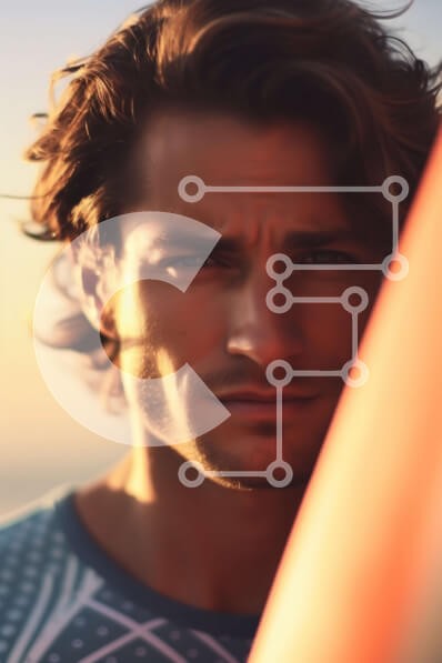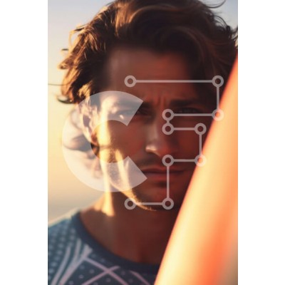 Υπάρχει δυνατότητα προσωποποίησης με δική σας φωτογραφία και προσαρμογής διαστάσεων κατόπιν παραγγελίας. Το συγεκεριμενο puzzle παρουσιαζει Αυτή η εικόνα απεικονίζει έναν άνδρα με μακριά κυματιστά μαλλιά, που φορά ένα μπλε και άσπρο ριγέ πουκάμισο και κρατά μια κόκκινη σανίδα του σερφ στον ώμο του. Ο ήλιος δύει στο βάθος, δημιουργώντας μια ζεστή πορτοκαλί λάμψη. Ο άντρας έχει μια περιστασιακή και χαλαρή έκφραση, α
