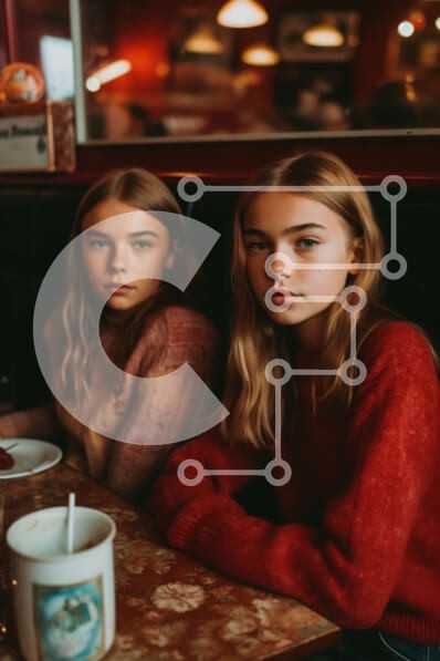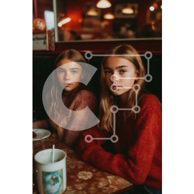 Υπάρχει δυνατότητα προσωποποίησης με δική σας φωτογραφία και προσαρμογής διαστάσεων κατόπιν παραγγελίας. Το συγεκεριμενο puzzle παρουσιαζει Αυτή η εικόνα παρουσιάζει δύο νεαρά κορίτσια να κάθονται σε ένα τραπέζι σε ένα τραπεζαρία. Το κορίτσι στα αριστερά έχει μακριά σγουρά μαλλιά και φοράει ένα κόκκινο πουλόβερ, ενώ το κορίτσι στα δεξιά έχει κοντά ξανθά μαλλιά και φοράει ένα ροζ πουλόβερ. Και οι δύο δείχνουν να πε