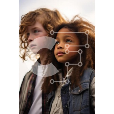 Υπάρχει δυνατότητα προσωποποίησης με δική σας φωτογραφία και προσαρμογής διαστάσεων κατόπιν παραγγελίας. Το συγεκεριμενο puzzle παρουσιαζει Η εικόνα παρουσιάζει δύο παιδιά να στέκονται δίπλα-δίπλα και να κοιτάζουν σκεφτικά την απόσταση. Το παιδί στα αριστερά έχει σγουρά, καστανοκόκκινα μαλλιά και φοράει ένα καρό πουκάμισο κάτω από ένα γιλέκο, ενώ το παιδί στα δεξιά έχει σγουρά, σκούρα καστανά μαλλιά και μια ανοιχτ