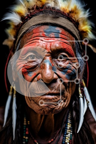Υπάρχει δυνατότητα προσωποποίησης με δική σας φωτογραφία και προσαρμογής διαστάσεων κατόπιν παραγγελίας. Το συγεκεριμενο puzzle παρουσιαζει Αυτή η εικόνα απεικονίζει έναν ηλικιωμένο ιθαγενή Αμερικανό άνδρα που φοράει φτερωτό κάλυμμα κεφαλής και έχει βαμμένο πρόσωπο. Ο άντρας έχει μια σοβαρή έκφραση και κοιτάζει κατευθείαν την κάμερα. Ένα μοναδικό puzzle που συνδυάζει ποιότητα, αισθητική και εμπειρία. Υλικό: Κατα