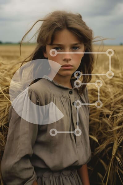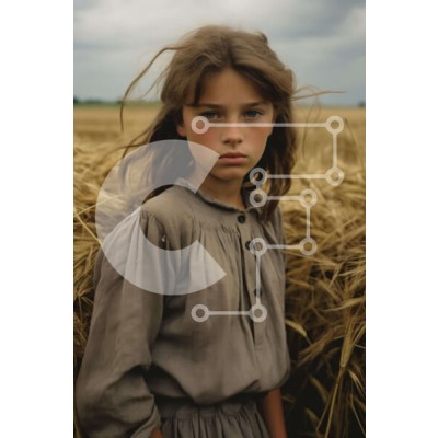 Υπάρχει δυνατότητα προσωποποίησης με δική σας φωτογραφία και προσαρμογής διαστάσεων κατόπιν παραγγελίας. Το συγεκεριμενο puzzle παρουσιαζει Η εικόνα παρουσιάζει ένα νεαρό κορίτσι που στέκεται στη μέση ενός ανοιχτού χωραφιού με σιτάρι. Φαίνεται να κοιτάζει την κάμερα με τα μάτια της ορθάνοιχτα, υπονοώντας ότι είναι εστιασμένη σε κάτι ή σε κάποιον. Το φόρεμα και το χτένισμά της είναι παρόμοια με αυτά που φορούν πολλ