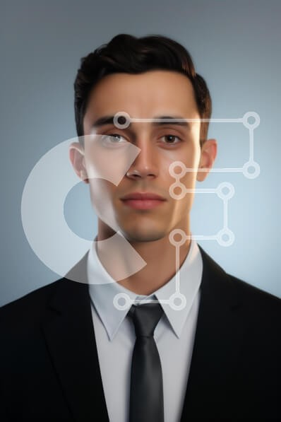 Υπάρχει δυνατότητα προσωποποίησης με δική σας φωτογραφία και προσαρμογής διαστάσεων κατόπιν παραγγελίας. Το συγεκεριμενο puzzle παρουσιαζει Αυτή η εικόνα παρουσιάζει έναν νεαρό άνδρα με σοβαρή έκφραση, ντυμένο με επίσημο μαύρο κοστούμι με λευκό πουκάμισο και μαύρη γραβάτα. Τοποθετείται σε ένα απαλό ντεγκραντέ φόντο που μεταβαίνει από ανοιχτό μπλε σε γκρι, τονίζοντας τα χαρακτηριστικά του προσώπου και την ενδυμασία