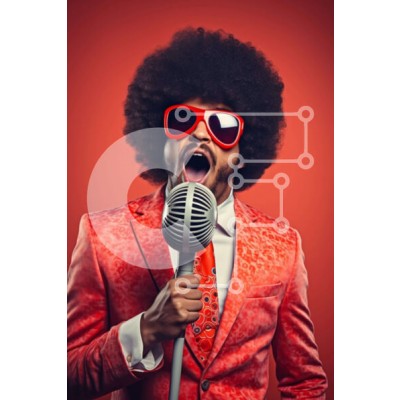 Υπάρχει δυνατότητα προσωποποίησης με δική σας φωτογραφία και προσαρμογής διαστάσεων κατόπιν παραγγελίας. Το συγεκεριμενο puzzle παρουσιαζει Η εικόνα απεικονίζει έναν άνδρα με χτένισμα Afro και κόκκινο κοστούμι, που φοράει γυαλιά ηλίου και τραγουδά στο μικρόφωνο. Φαίνεται να εμφανίζεται σε μια εκδήλωση ή πάρτι, αποπνέοντας μια ζωντανή και εορταστική ατμόσφαιρα. Ένα μοναδικό puzzle που συνδυάζει ποιότητα, αισθητική