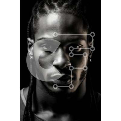 Υπάρχει δυνατότητα προσωποποίησης με δική σας φωτογραφία και προσαρμογής διαστάσεων κατόπιν παραγγελίας. Το συγεκεριμενο puzzle παρουσιαζει Αυτή η εικόνα παρουσιάζει ένα κοντινό πορτρέτο ενός άνδρα με μακριά, πλεγμένα μαλλιά, που κοιτάζει επίμονα την κάμερα. Η έκφραση του προσώπου του είναι σοβαρή και ο φωτισμός δημιουργεί μια δραματική αντίθεση μεταξύ φωτός και σκιάς, ενισχύοντας τις λεπτομέρειες των χαρακτηριστι