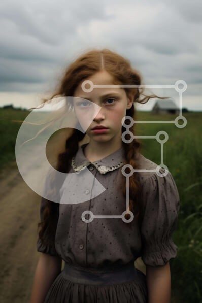 Υπάρχει δυνατότητα προσωποποίησης με δική σας φωτογραφία και προσαρμογής διαστάσεων κατόπιν παραγγελίας. Το συγεκεριμενο puzzle παρουσιαζει Ένα νεαρό κορίτσι με κόκκινα μαλλιά που στέκεται στη μέση ενός άδειου χωματόδρομου. Έχει μακριά, σγουρά μαλλιά δεμένα σε κοτσιδάκια και πλεγμένα στο πίσω μέρος του κεφαλιού της. Το πρόσωπό της φαίνεται ανέκφραστο καθώς κοιτάζει την απόσταση. Ένα μοναδικό puzzle που συνδυάζει