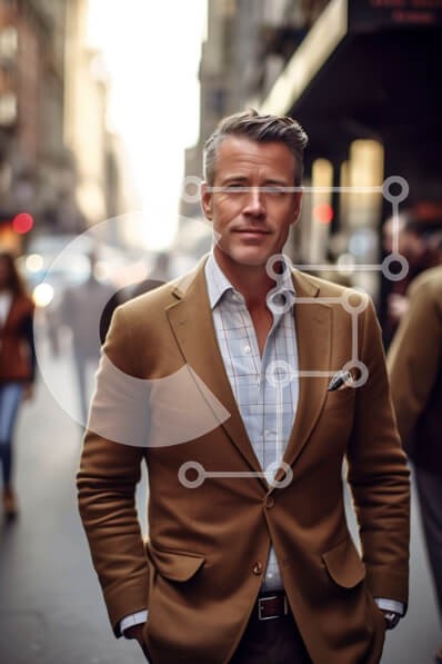 Υπάρχει δυνατότητα προσωποποίησης με δική σας φωτογραφία και προσαρμογής διαστάσεων κατόπιν παραγγελίας. Το συγεκεριμενο puzzle παρουσιαζει Αυτή η εικόνα δείχνει έναν άνδρα με μαύρισμα κοστούμι και λευκό πουκάμισο να στέκεται σε έναν δρόμο της πόλης. Κοιτάζει κατευθείαν την κάμερα με ουδέτερη έκφραση. Το αστικό τοπίο φαίνεται στο βάθος. Ένα μοναδικό puzzle που συνδυάζει ποιότητα, αισθητική και εμπειρία. Υλικό: Κ