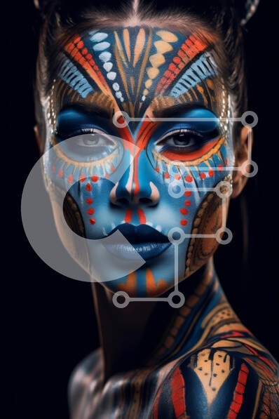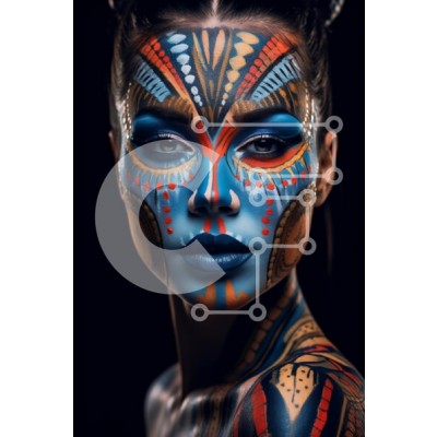 Υπάρχει δυνατότητα προσωποποίησης με δική σας φωτογραφία και προσαρμογής διαστάσεων κατόπιν παραγγελίας. Το συγεκεριμενο puzzle παρουσιαζει Αυτή η εικόνα απεικονίζει μια γυναίκα με μπλε και πορτοκαλί ζωγραφική προσώπου, φορώντας μια μαύρη στολή. Το χρώμα του προσώπου της με έντονα χρώματα έρχεται σε όμορφη αντίθεση με τα σκούρα ρούχα της, δημιουργώντας μια εντυπωσιακή εικόνα που σίγουρα θα τραβήξει τα βλέμματα. Η