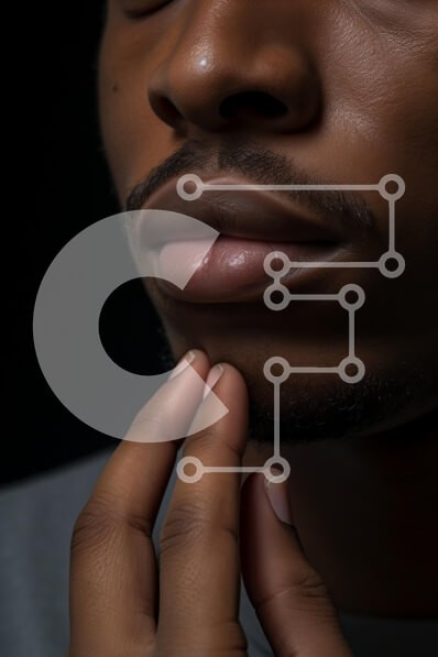 Υπάρχει δυνατότητα προσωποποίησης με δική σας φωτογραφία και προσαρμογής διαστάσεων κατόπιν παραγγελίας. Το συγεκεριμενο puzzle παρουσιαζει Αυτή η εικόνα παρουσιάζει ένα κοντινό πλάνο του προσώπου ενός άνδρα με εστίαση στα χείλη και το πηγούνι του. Ο άνδρας φαίνεται να είναι στοχαστικός, αγγίζοντας απαλά το πηγούνι του με τα δάχτυλά του. Ο φωτισμός είναι απαλός και αναδεικνύει τις υφές του δέρματος και των μαλλιών