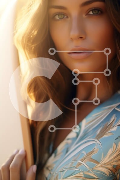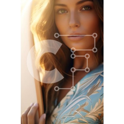 Υπάρχει δυνατότητα προσωποποίησης με δική σας φωτογραφία και προσαρμογής διαστάσεων κατόπιν παραγγελίας. Το συγεκεριμενο puzzle παρουσιαζει Αυτή η εικόνα παρουσιάζει μια όμορφη νεαρή γυναίκα με μακριά, σπαστά καστανά μαλλιά και καστανά μάτια. Φοράει ένα γαλανόλευκο φλοράλ φόρεμα και κρατά μια σανίδα του σερφ μπροστά της. Ο ήλιος πέφτει πάνω της, δημιουργώντας μια ζεστή λάμψη στο δέρμα της και κάνοντας τα μαλλιά τη