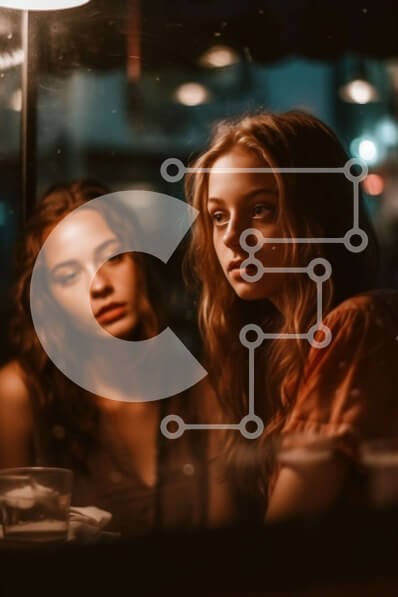 Υπάρχει δυνατότητα προσωποποίησης με δική σας φωτογραφία και προσαρμογής διαστάσεων κατόπιν παραγγελίας. Το συγεκεριμενο puzzle παρουσιαζει Αυτή η στοκ φωτογραφία δείχνει δύο νεαρές γυναίκες να κάθονται σε ένα τραπέζι σε ένα αμυδρά φωτισμένο εστιατόριο. Και οι δύο κοιτάζουν τα τηλέφωνά τους και δείχνουν να περνούν καλά. Η ατμόσφαιρα είναι ζεστή και οικεία, με ζεστό φωτισμό και χαλαρή ατμόσφαιρα. Ένα μοναδικό puzz