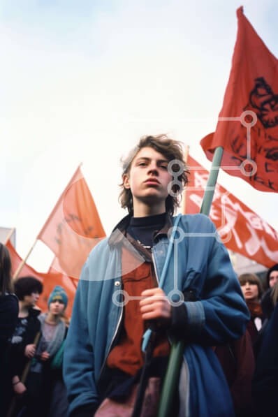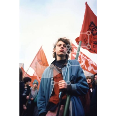 Υπάρχει δυνατότητα προσωποποίησης με δική σας φωτογραφία και προσαρμογής διαστάσεων κατόπιν παραγγελίας. Το συγεκεριμενο puzzle παρουσιαζει Η εικόνα παρουσιάζει μια ομάδα ανθρώπων που κρατούν κόκκινες σημαίες στο πρώτο πλάνο. Ένας νεαρός άνδρας στέκεται κοντά στο μπροστινό μέρος του πλήθους, με την πλάτη του στην κάμερα. Φαίνεται να συμμετέχει σε κάποιο είδος διαμαρτυρίας ή συγκέντρωσης, όπως φαίνεται από την παρο