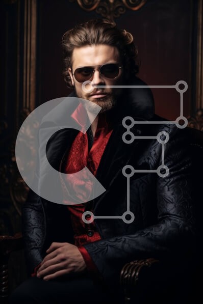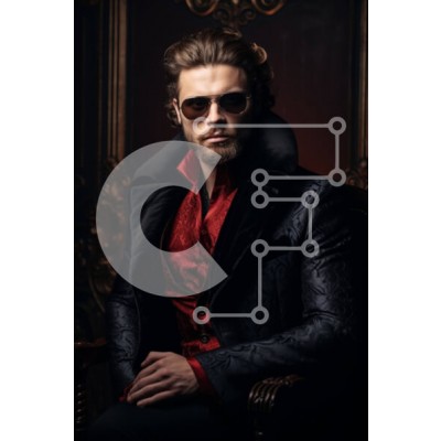 Υπάρχει δυνατότητα προσωποποίησης με δική σας φωτογραφία και προσαρμογής διαστάσεων κατόπιν παραγγελίας. Το συγεκεριμενο puzzle παρουσιαζει Η εικόνα απεικονίζει έναν άνδρα που κάθεται σε μια περίτεχνη καρέκλα και φοράει γυαλιά ηλίου. Είναι ντυμένος με σκούρα ρούχα, υποδηλώνοντας πιθανώς ότι ποζάρει στον φωτογραφικό φακό. Η στολή του άντρα μπορεί να είναι μέρος της καθημερινής του ενδυμασίας ή μπορεί να έχει αγορασ