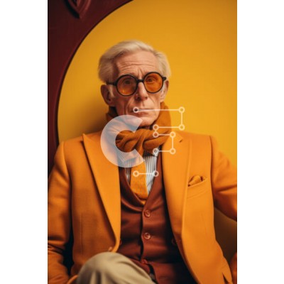 Υπάρχει δυνατότητα προσωποποίησης με δική σας φωτογραφία και προσαρμογής διαστάσεων κατόπιν παραγγελίας. Το συγεκεριμενο puzzle παρουσιαζει Η εικόνα απεικονίζει έναν ηλικιωμένο άνδρα που φορά ένα πορτοκαλί κοστούμι, ένα κασκόλ και γυαλιά ηλίου. Κάθεται μπροστά σε έναν κίτρινο τοίχο με πλαίσιο με την πλάτη στραμμένη στην κάμερα. Τα γυαλιά του φαίνονται στο πρόσωπό του, υποδηλώνοντας ότι φοράει γυαλιά. Ένα μοναδικό