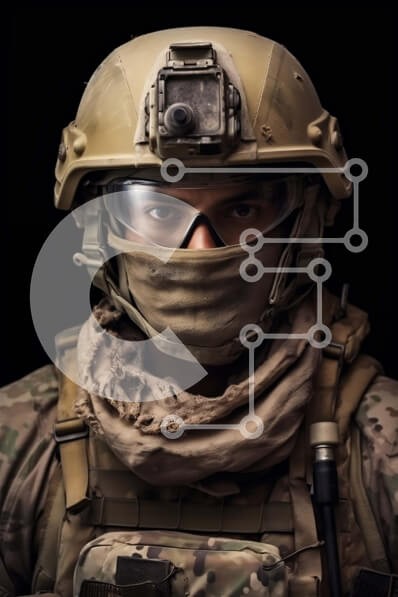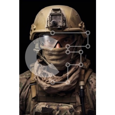 Υπάρχει δυνατότητα προσωποποίησης με δική σας φωτογραφία και προσαρμογής διαστάσεων κατόπιν παραγγελίας. Το συγεκεριμενο puzzle παρουσιαζει Αυτή η στοκ φωτογραφία παρουσιάζει έναν στρατιώτη που φοράει κράνος και γυαλιά, που στέκεται σε μαύρο φόντο. Ο στρατιώτης κοιτάζει μπροστά και έχει ένα σοβαρό βλέμμα στο πρόσωπό του. Η εικόνα είναι υψηλής ποιότητας και ιδανική για έργα που σχετίζονται με τον στρατό, τον πόλεμο