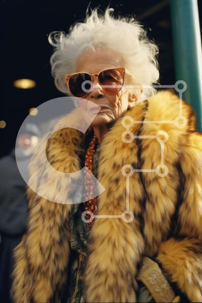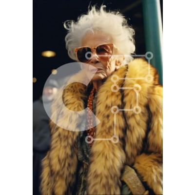 Υπάρχει δυνατότητα προσωποποίησης με δική σας φωτογραφία και προσαρμογής διαστάσεων κατόπιν παραγγελίας. Το συγεκεριμενο puzzle παρουσιαζει Η εικόνα απεικονίζει μια ηλικιωμένη γυναίκα να φορά ένα γούνινο παλτό και γυαλιά ηλίου, να στέκεται στο δρόμο με άλλους ανθρώπους κοντά. Διακρίνονται μικρές λεπτομέρειες όπως το κολιέ και τα σκουλαρίκια της. Ένα μοναδικό puzzle που συνδυάζει ποιότητα, αισθητική και εμπειρία.