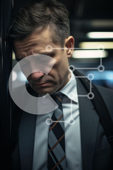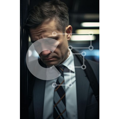 Υπάρχει δυνατότητα προσωποποίησης με δική σας φωτογραφία και προσαρμογής διαστάσεων κατόπιν παραγγελίας. Το συγεκεριμενο puzzle παρουσιαζει Η εικόνα δείχνει έναν άνδρα με κοστούμι, που εμφανίζεται στοχαστικός ή στενοχωρημένος καθώς ακουμπά το κεφάλι του σε έναν στύλο. Έχει κοντά, προσεγμένα μαλλιά και φοράει επίσημη γραβάτα με σχέδιο. Το φόντο υποδηλώνει ένα αστικό περιβάλλον, πιθανώς ένα μετρό ή τρένο, με απαλό φ