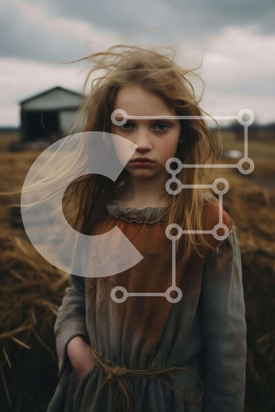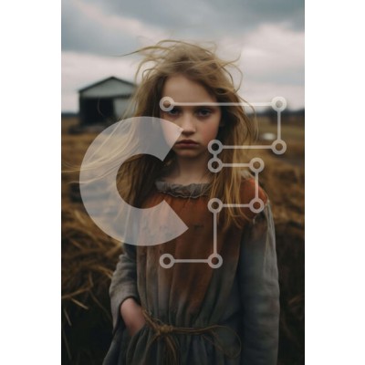 Υπάρχει δυνατότητα προσωποποίησης με δική σας φωτογραφία και προσαρμογής διαστάσεων κατόπιν παραγγελίας. Το συγεκεριμενο puzzle παρουσιαζει Η εικόνα δείχνει ένα νεαρό κορίτσι να στέκεται σε ένα χωράφι με τα μαλλιά της να φουσκώνουν γύρω από το πρόσωπό της. Φοράει ένα παλιό φόρεμα, υποδηλώνοντας μια πιθανή τραυματική εμπειρία. Αρκετοί αχυρώνες και κτίρια περιβάλλουν την κοπέλα, πιθανώς να σχετίζονται με την κατάστα