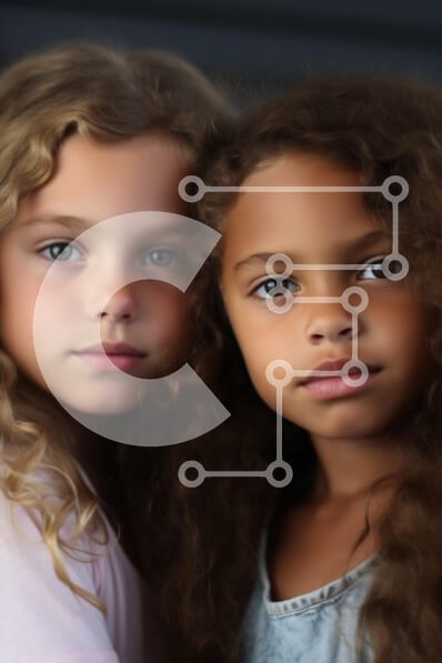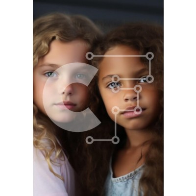 Υπάρχει δυνατότητα προσωποποίησης με δική σας φωτογραφία και προσαρμογής διαστάσεων κατόπιν παραγγελίας. Το συγεκεριμενο puzzle παρουσιαζει Αυτή η εικόνα παρουσιάζει δύο νεαρά κορίτσια με διαφορετική υφή και χρώματα μαλλιών, να στέκονται κοντά με τα πρόσωπά τους μερικώς στραμμένα προς την κάμερα. Το ένα κορίτσι έχει μακριά, κυματιστά ξανθά μαλλιά και πράσινα μάτια, ενώ το άλλο έχει σγουρά καστανά μαλλιά και πιο σκ