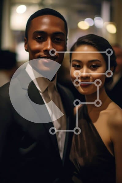 Υπάρχει δυνατότητα προσωποποίησης με δική σας φωτογραφία και προσαρμογής διαστάσεων κατόπιν παραγγελίας. Το συγεκεριμενο puzzle παρουσιαζει Αυτή η εικόνα είναι ένα επίσημο πορτρέτο ενός νεαρού άνδρα και μιας γυναίκας που στέκονται κοντά ο ένας στον άλλο, με τα χέρια τους γύρω από τη μέση του άλλου. Και οι δύο φορούν επίσημη ενδυμασία, με τον άνδρα με καφέ κοστούμι και τη γυναίκα με μαύρο φόρεμα. Και οι δύο χαμογελ