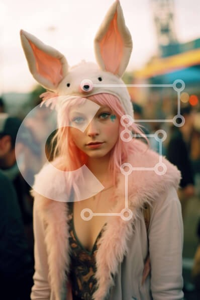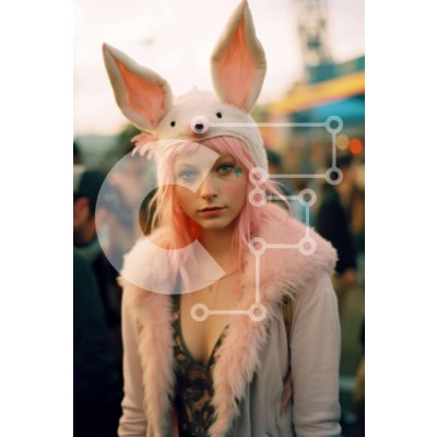 | Όνομα Προϊόντος | Intra Συλλεκτικό Ξύλινο Παζλ Plywood 4mm - Νεαρή γυναίκα με ροζ μαλλιά και καπέλο με αυτιά λαγουδάκι σε υπαίθρια εκδήλωση Σε Ξύλινο Κουτί - Διαστάσεις Puzzle: 10x10 cm – 25 κομμάτια |