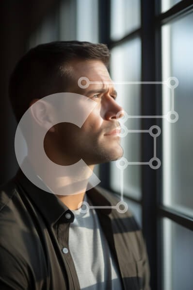Υπάρχει δυνατότητα προσωποποίησης με δική σας φωτογραφία και προσαρμογής διαστάσεων κατόπιν παραγγελίας. Το συγεκεριμενο puzzle παρουσιαζει Η εικόνα απεικονίζει έναν σκεπτόμενο άνδρα να κοιτάζει από ένα παράθυρο, λουσμένο στο φυσικό φως. Το πρόσωπό του φωτίζεται από το φως του ήλιου που περνά μέσα από το παράθυρο, δημιουργώντας απαλές σκιές στα χαρακτηριστικά του. Το φόντο είναι θολό, υπογραμμίζοντας τη στοχαστική